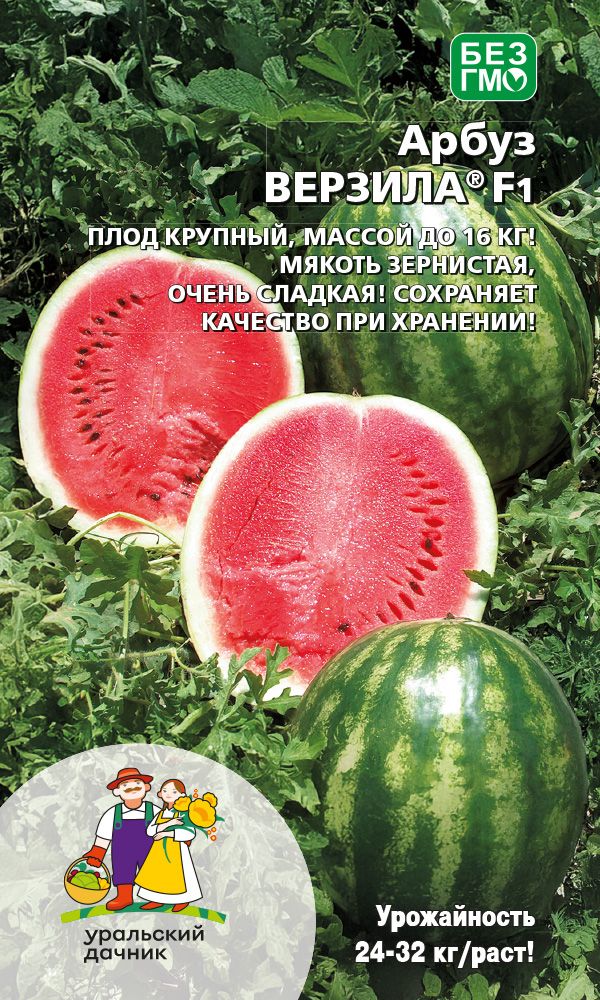 Крупные плоды весом 12-16 кг! Мякоть невероятно сочная, хрустящая и очень сладкая. Идеально подходит для приготовления цукатов из арбузной кожуры.Этот среднеспелый гибрид (85-95 дней от всходов до созревания) можно выращивать как в открытом грунте, так и под плёнкой. Растение...