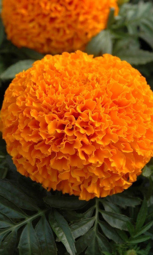 Великолепные крупные махровые соцветия. Куст компактный, высотой до 90 см. Побеги прочные, ребристые, светло-зелёные. Созвездия гвоздиковидные, полушаровидные, 8-10 см в диаментре, оранжевые, жёлтые, золотистые. Цветет с июля по октябрь. Используются для клумб, рабаток, высоких групп, на срезку. Растение теплолюбивое, засухоустойчивое...