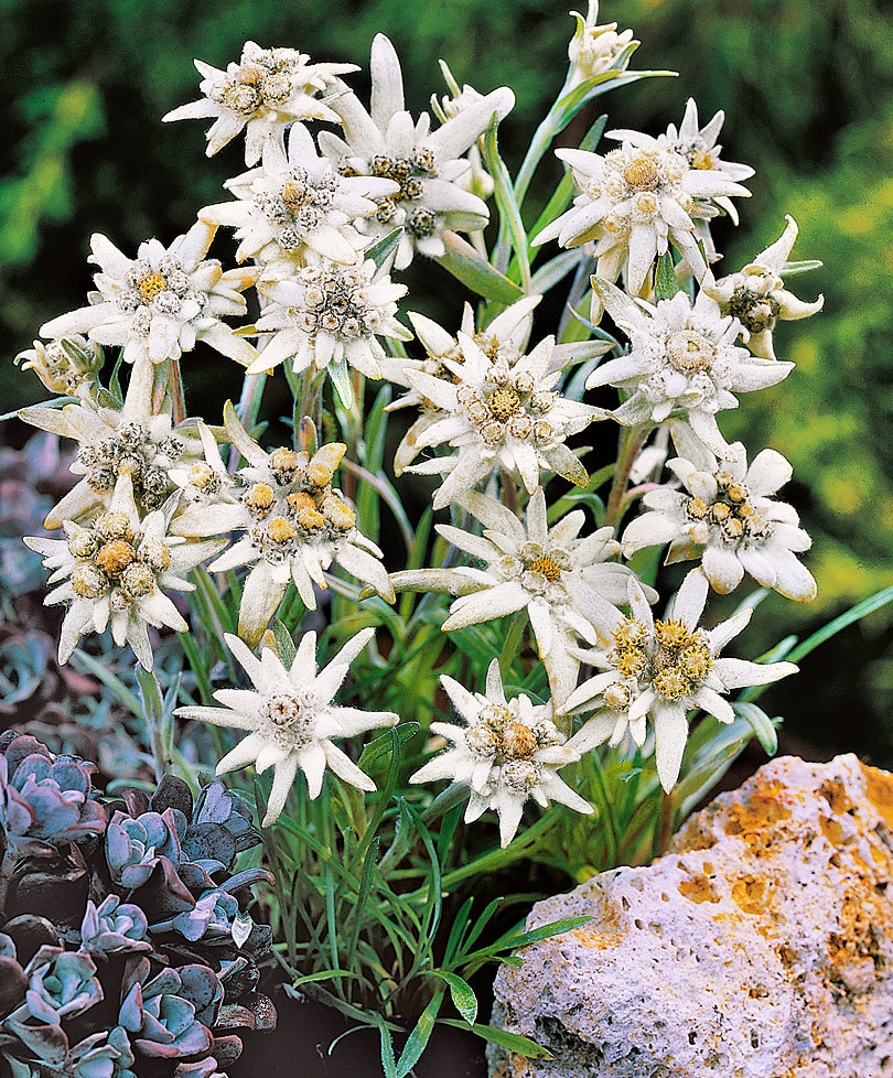 Эдельвейс Альпийский – красивейший высокогорный цветок, символ гор. Благодаря сильному опущению, все растение словно светится серебристым цветом! Такая «листовая конструкция» помогает накапливать растению воду и не допускает быстрого испарения. Садоводам от этого сплошные плюсы: эдельвейс не требует частого полива! Красивее всего он смотрится у подножия «Альп»: на альпийских горках или между камнями подпорных стенок. Почва ему необходима бедная, с хорошим дренажем, слабо-щелочная. Создавая посадочную яму, не забудьте добавить туда крупного песка, щебня и т.п. Также эдельвейс любит солнечный свет. Тенистые участки точно не для него. Ведь это дитя гор, которое в природе каждый день радуется свету!