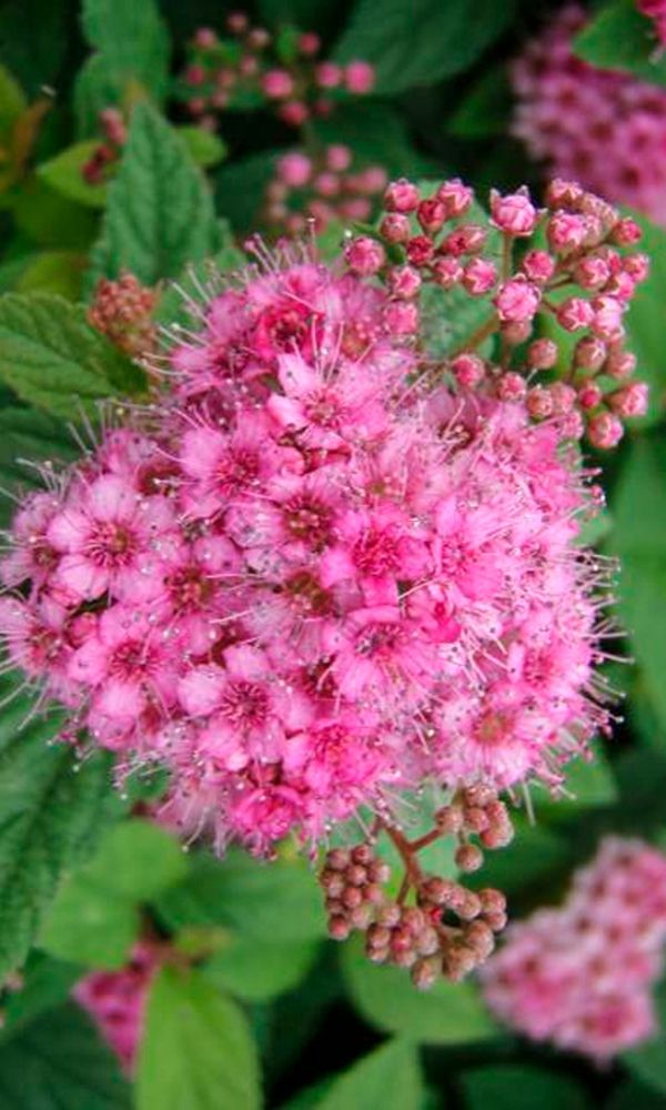 Один из самых сильных и быстрорастущих видов спиреи. Его высота достигает 1,3 м, а диаметр – 1,5 м.Листья крупные, до 15 см в длину, имеют широкоэллиптическую форму. В верхней части побега они окрашены в красный цвет на протяжении всего сезона, а остальные листья зелёные...