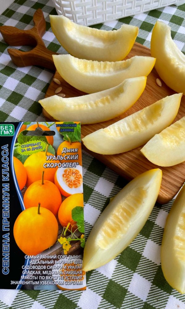 Ультраскороспелый сорт с изумительно вкусными плодами. От появления всходов до первого сбора урожая проходит 56-65 дней. Плоды яркие, нарядные, жёлтые с оранжевыми пятнами и полосками. Мякоть сочная, нежная, тающая во рту. Специалисты отмечают насыщенный вкус с приятным сладким послевкусием. Лучше всего дыни удаются на тёплых грядках и при умеренном поливе. Для сортов скороспелой группы они неплохо транспортируются. Хранятся, не теряя своих качеств, до 15-20 дней...