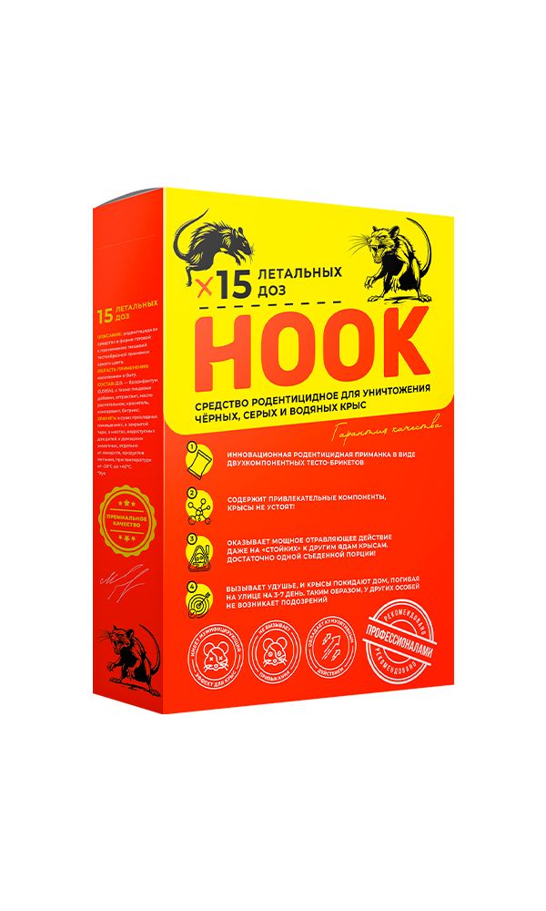 Предназначен для борьбы с серыми и чёрными крысами, домовыми и полевыми мышами, водяными крысами. Препаративная форма (твёрдые гранулы) в отличие от большинства аналогов характеризуется повышенной устойчивостью к размыканию, гранулы не ломаются, не крошатся, длительное...
