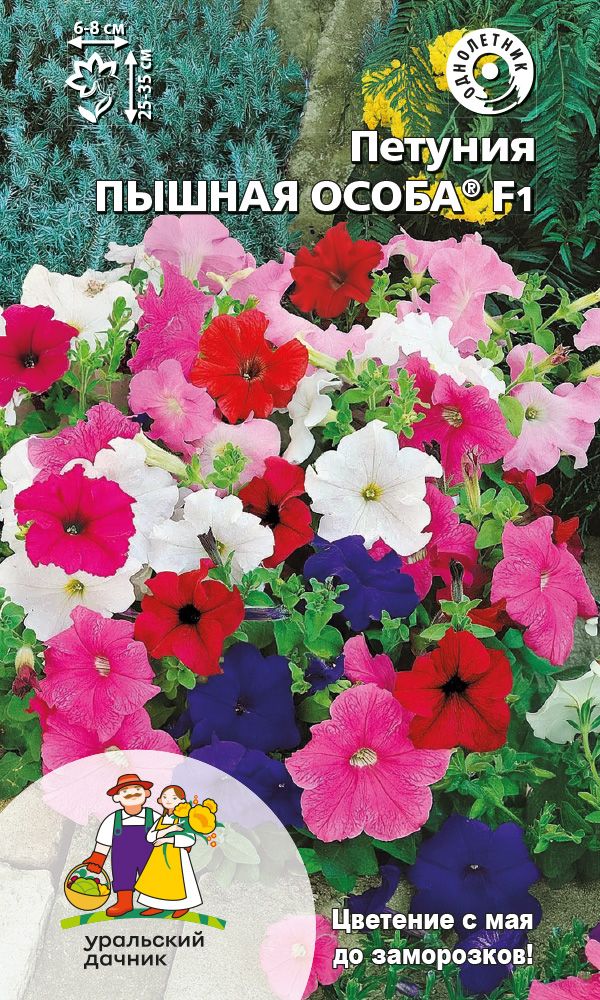 Эта смесь крупноцветковых петуний впечатляет разнообразием оттенков. Растения радуют обильным цветением весь сезон и устойчивы к капризам погоды. Цветение начинается еще на стадии рассады. Кусты отличаются плотной и крепкой структурой. В горшках они вырастают до 20-25 см, а в грунте достигают 25-35 см в высоту. Цветы диаметром 6-8 см. Эти гибриды комфортно чувствуют себя в горшках, вазонах и ящиках, идеально подходят для украшения клумб, рабаток и бордюров. Для горшков диаметром от 8 до 10 см лучше выбрать одно растение. В корзинах и больших кашпо можно разместить от 3 до 5 растений.