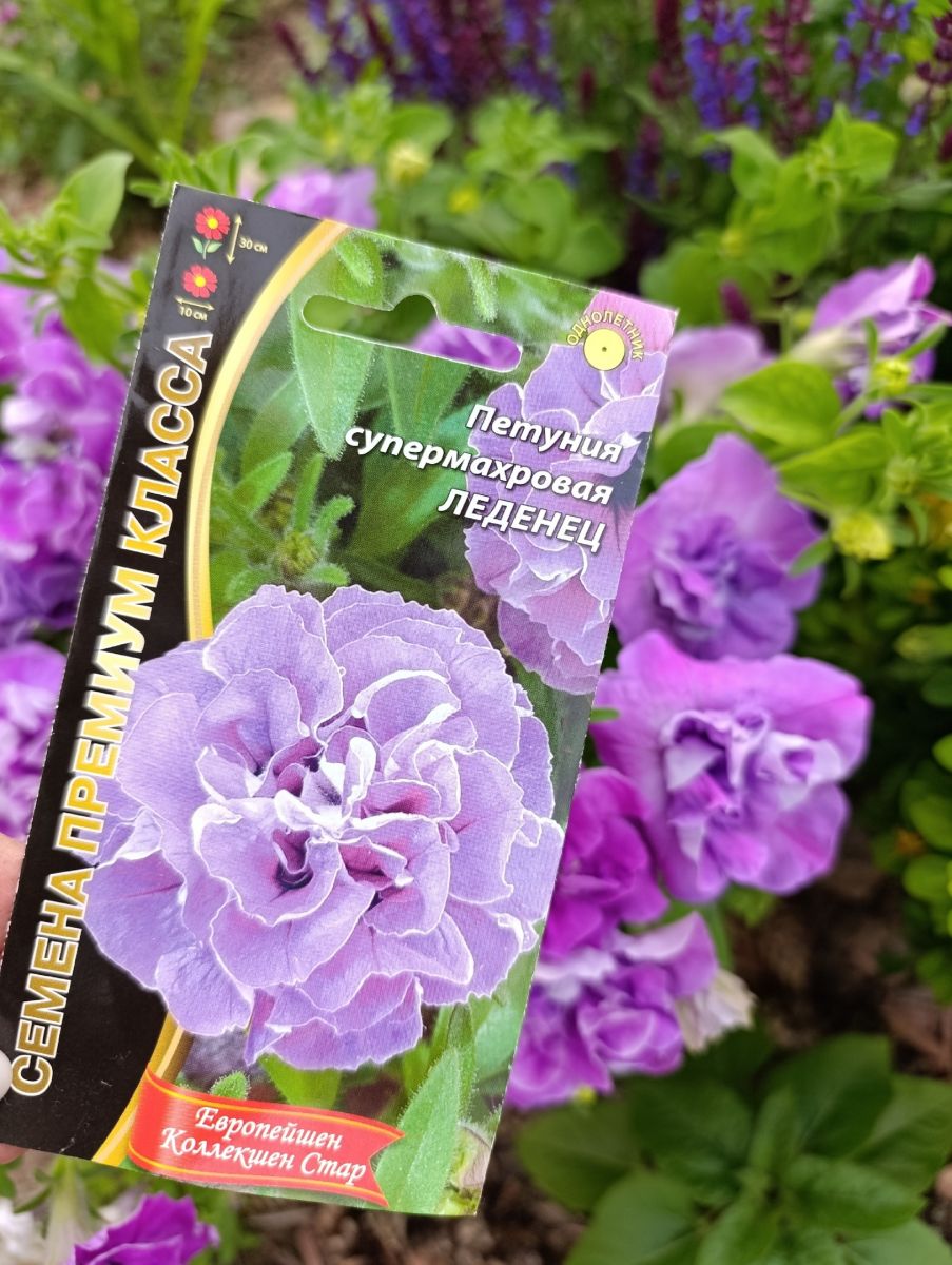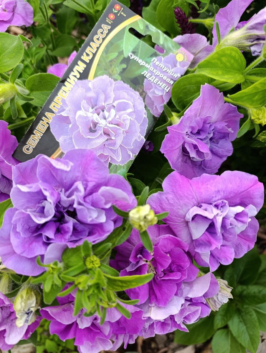 Шикарная махровая, крупноцветковая петуния отличается компактным кустом, высотой 20-30 см и обилием махровых цветков, с сильногофрированными лепестками, диаметром до 10 см, лавандового цвета. Используется в оформлении клумб, вазонов, балконных ящиков. Характеризуется пышным, длительным и обильным цветением.