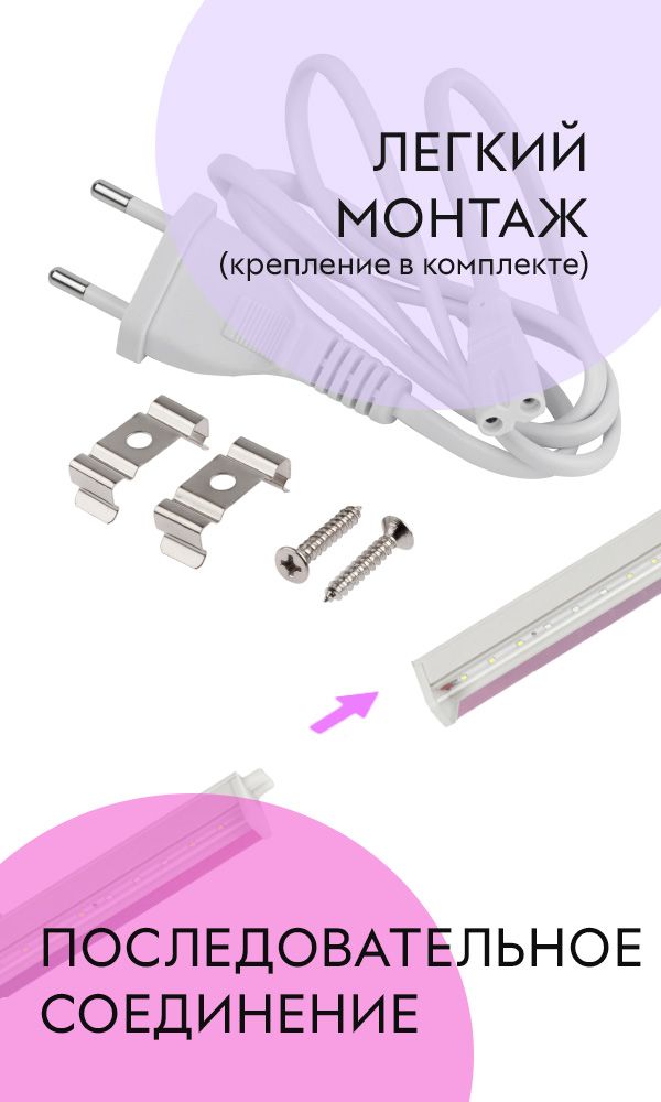 Светильник легко установить и удобно регулировать по высоте с помощью бечёвки или комплекта скоб. Его лаконичный дизайн аккуратно смотрится в домашнем интерьере и не создаёт ощущения громоздкого оборудования. При необходимости можно подключить несколько таких светильников в одну цепь — это особенно удобно, если вы выращиваете много рассады и хотите организовать полноценную зону досветки.