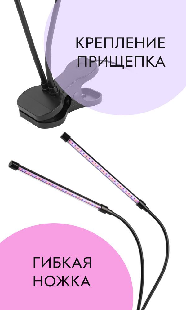 Благодаря своему минималистичному дизайну, фитолампа легко впишется в интерьер балкона или кухни. Главное преимущество этой модели — крепление на прищепке, которое позволяет быстро установить лампу и обеспечивает равномерное освещение. Свет фитолампы абсолютно безопасен для человека и животных.