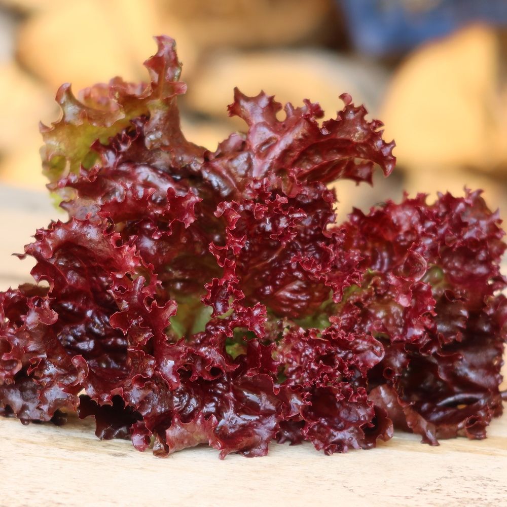 Высокоурожайный раннеспелый листовой сорт. Листья декоративные, гофрированные, красно-малиновые, нежные, хрустящие, формируют розетку диаметром 20-25 см.