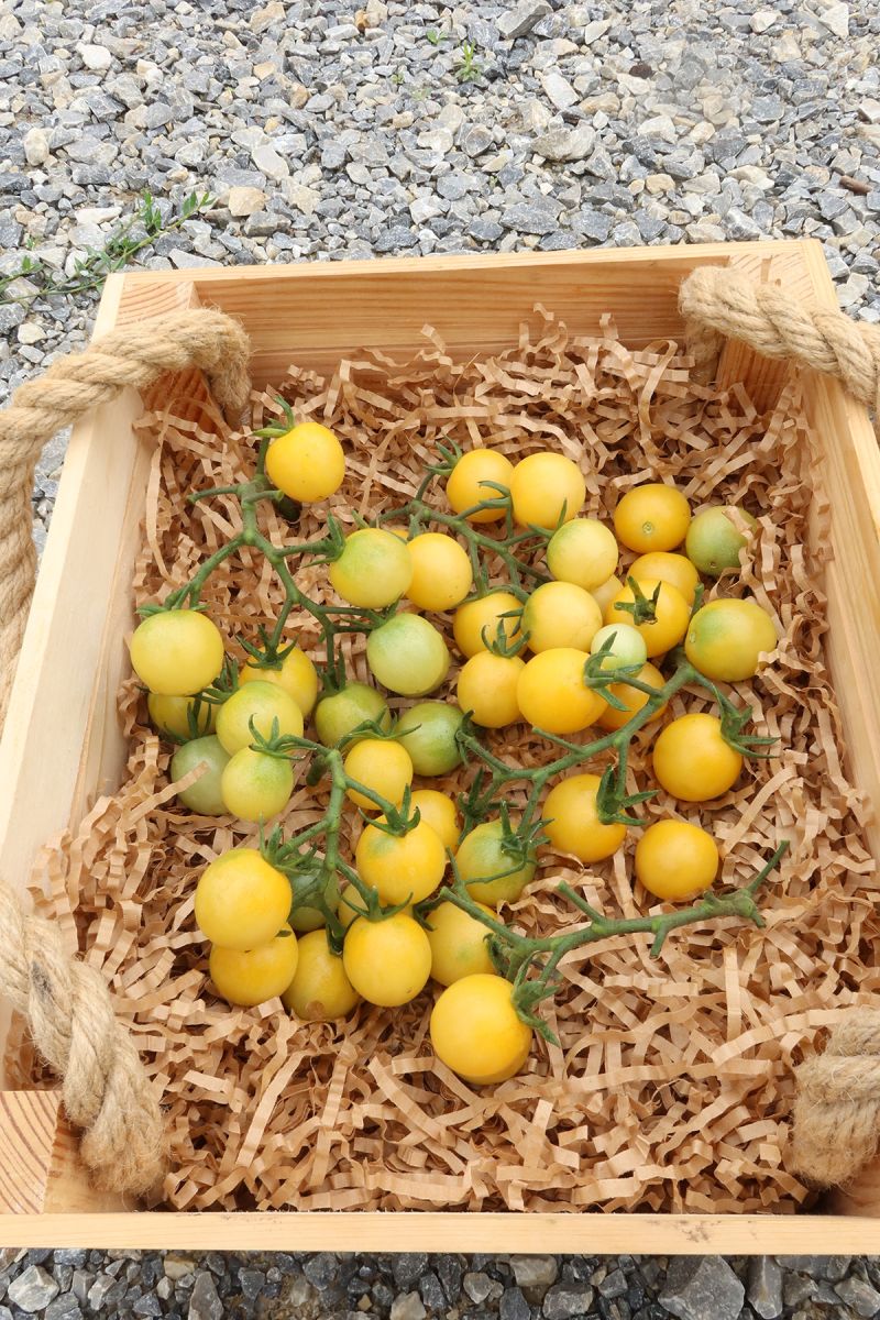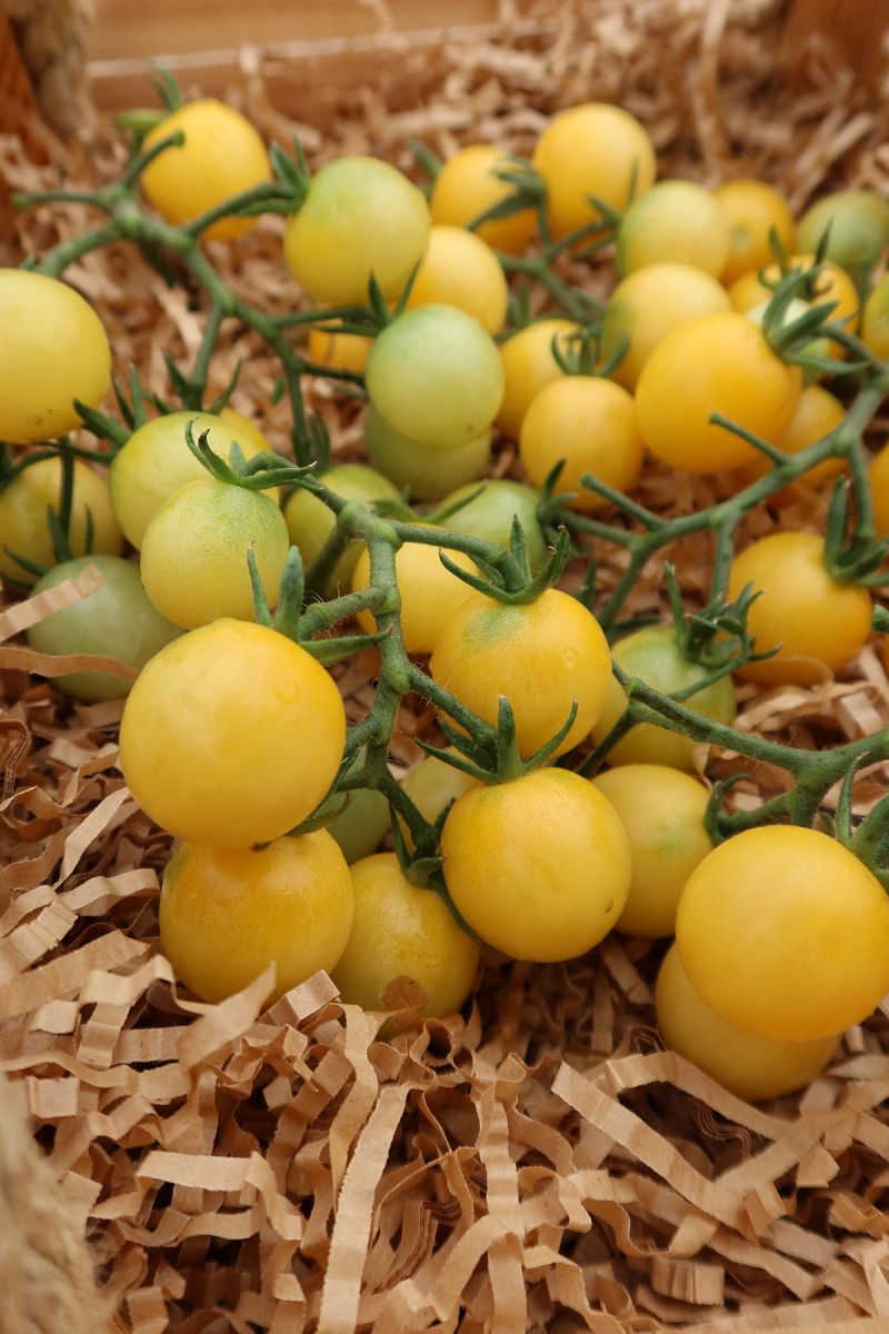 Ультраскороспелый, коллекционный, экзотический коктейльный сорт с очень большим количеством мелких (15-20 г) круглых плодов беловатой окраски, с высоким содержанием сахаров, органических кислот и витаминов, отличающийся прекрасным десертным вкусом. Главный стебель достигает высоты 1 м. Необычный декоративный внешний вид и суперсладкий вкус обязательно понравятся вашим детям! Используют в свежем виде, салатах, идеальны для консервирования.
