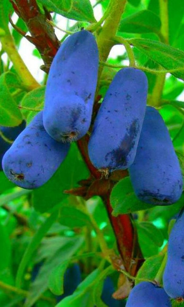 Жимолость Лазурная - среднеспелый, крупноплодный, морозостойкий сорт, с кроной в виде перевернутого конуса. Высотой до 1,7 м. Ягоды слегка вытянутые, с утолщением посередине. Плоды крупные, тёмно-синего с голубым налётом окраса, с кисло-сладким вкусом и черничным ароматом,...