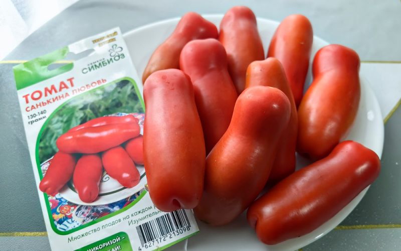 Томат Санькина любовь. Данный томат идеально подойдёт для тех, кто хочет спрятать лето в банки. Плоды плотные, кожица, плотная. Очень урожайный. Не пасынковала, растёт в свою волю. Сам вершкуется. Подвержен вершинке, но это может и не его недостаток, а питательность грунта. Висит горстями, зреет дружно. Семена однозначно возьму в коллекцию.
