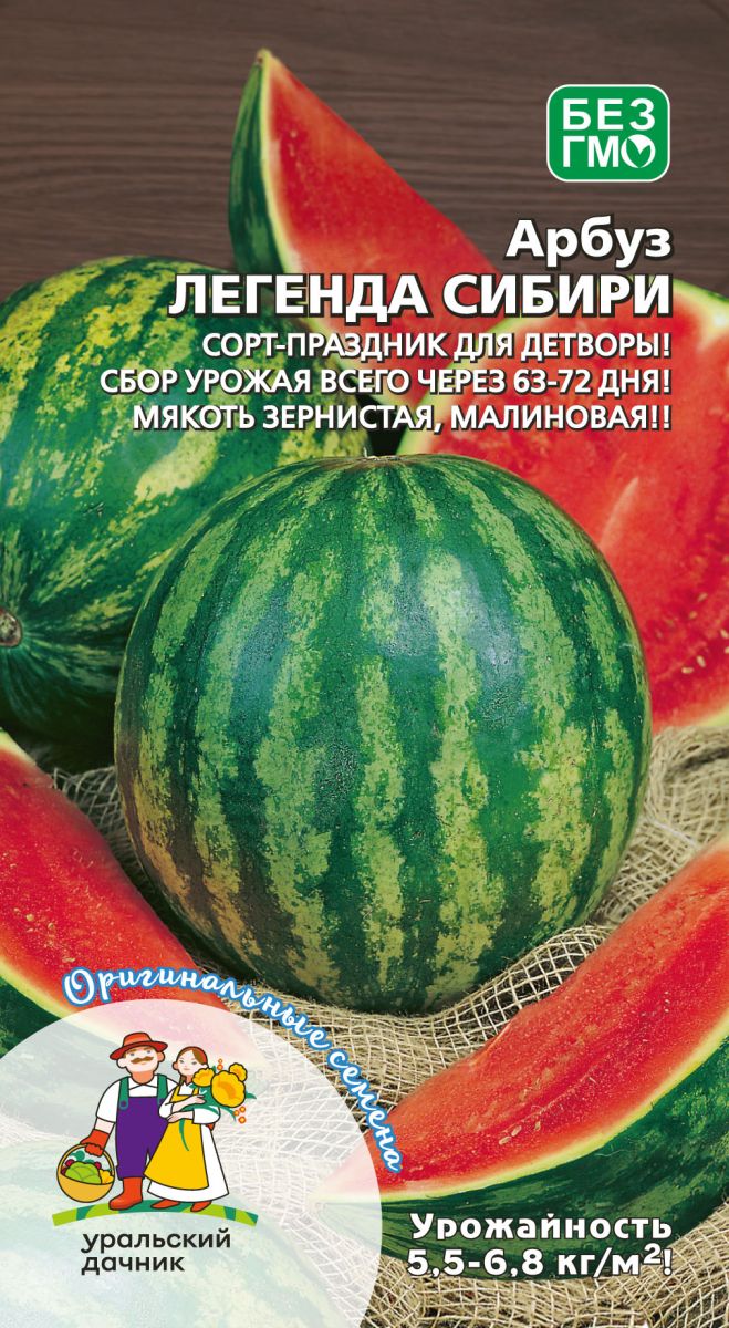 Получен путём скрещивания сортов Мелитопольский 143 х Необычайный с дальнейшим многолетним отбором. Сладкая зернистая мякоть с сильным арбузным ароматом, раннеспелость и крупноплодность – важные качества для любимой осенней ягоды. Растение мощное, с длинной главной плетью. Удлинённо-шаровидные плоды массой 4,6-6,1 кг созревают через 75-85 дней после появления всходов. Мякоть нежная, сочная, вкусная, насыщенного малинового цвета.