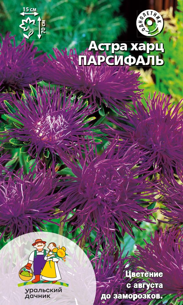 Густомахровая игольчатая астра! Растения высотой около 60 см. Соцветия густые длинноиголчатые, белые, кремово-жёлтые, серебристо-голубые, фиолетовые, серебристо-розовые, красные. Цветёт в августе - сентябре. Используют очень широко: для посадки в сборные цветники...