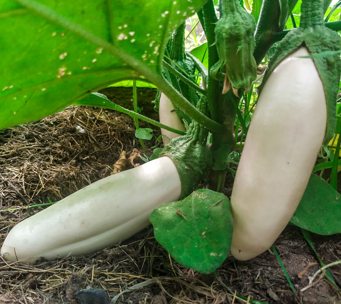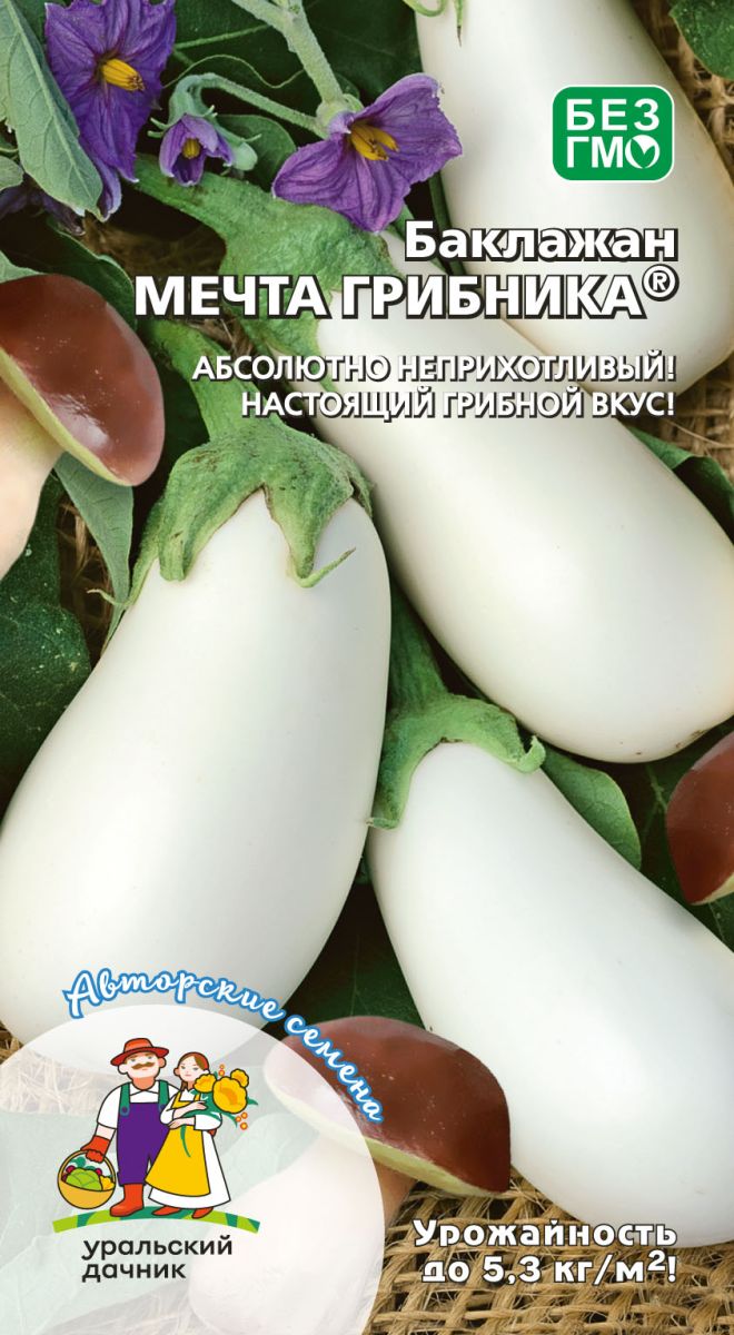 Абсолютно неприхотливый сорт с настоящим грибным вкусом! Удивительно урожайный, раннеспелый сорт для открытого и закрытого грунта. Растение компактное, высотой 50-70 см. Плоды овальные, белоснежного цвета, тонкокорые, массой до 250 г. Мякоть белая, очень нежная, без горечи, отменного вкуса, с тонким грибным ароматом. Используется для всех видов кулинарной обработки и консервирования. Идеален для продолжительного хранения. Отлично завязывает плоды при недостатке солнечного света и тепла. Очень высокая устойчивость к болезням. Растения потрясающе красивы: и когда они усыпаны крупными ярко-фиалковыми цветками, и когда начинают созревать необычные молочно-белые плоды. Благодаря исключительной нежности плодов и полному отсутствию в них горечи, сорт просто идеален для приготовления самых разнообразных горячих и холодных блюд.