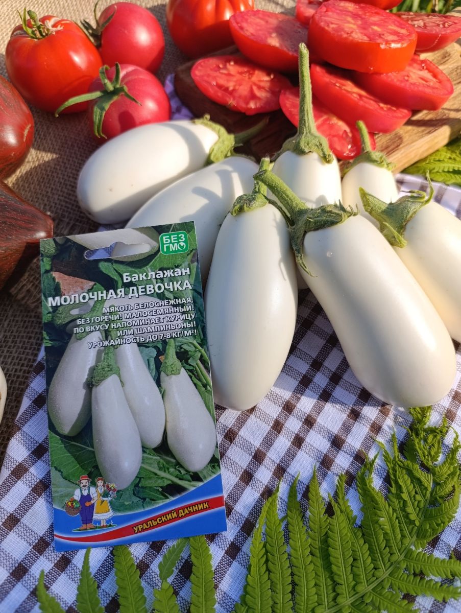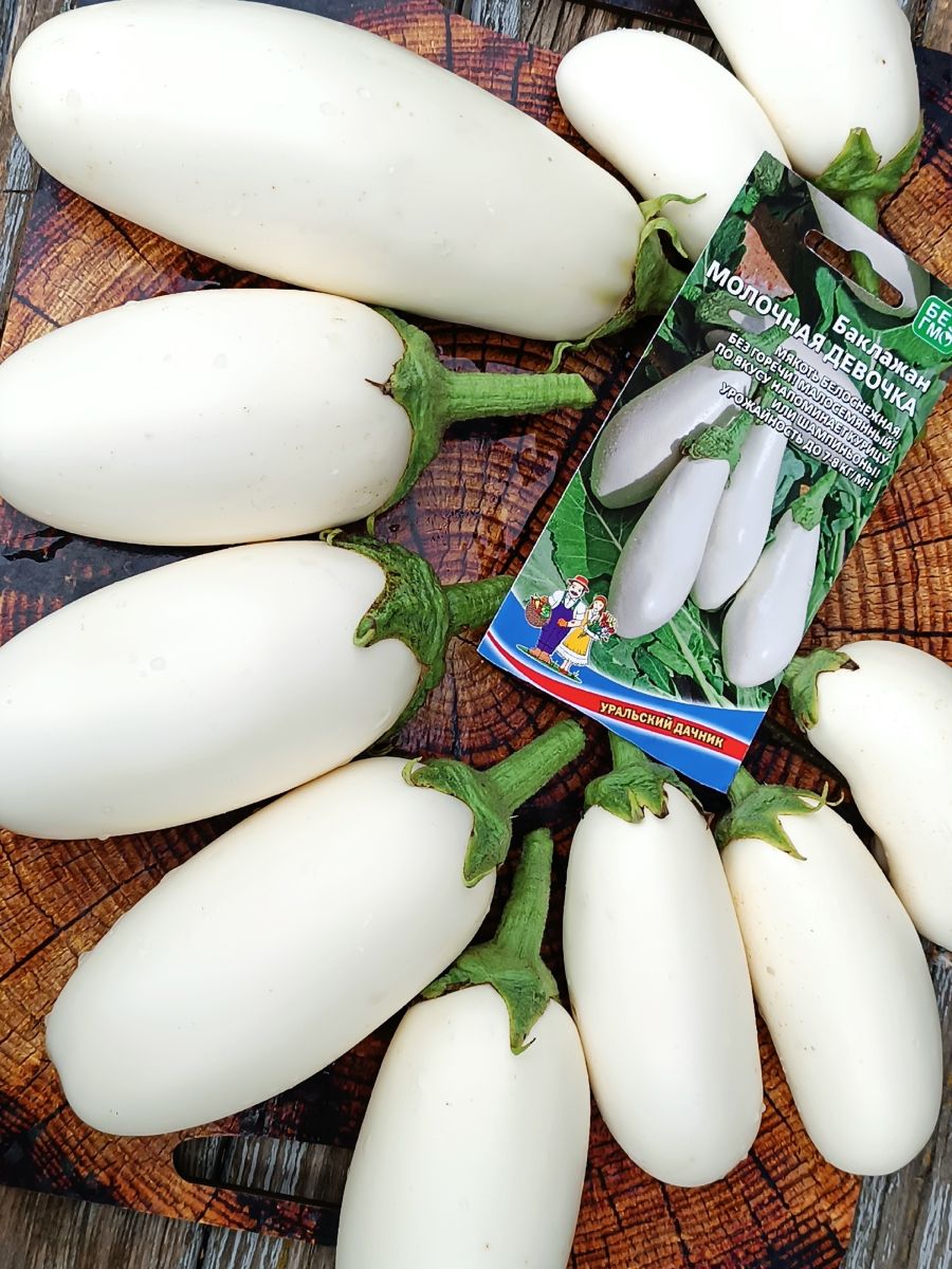 Один из лучших среднеспелых, неприхотливых, белоплодных сортов. Позволяет получить стабильный урожай. Высота компактных растений не превышает 60 см. Первые баклажаны готовы к уборке через 115-135 дней после появления всходов. Плоды длиной около 20 см, средней массой 190-210 г. Мякоть белоснежная, без горечи, с приятным грибным привкусом, семян очень мало. Аппетитные, кулинарные деликатесы из баклажана – ценный диетический продукт для всей семьи!