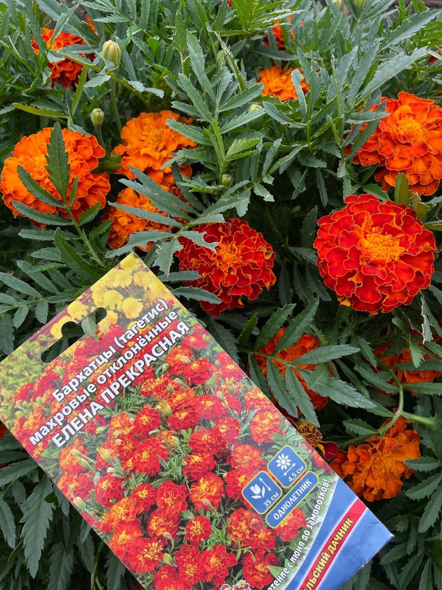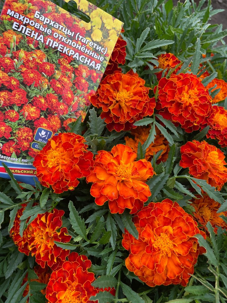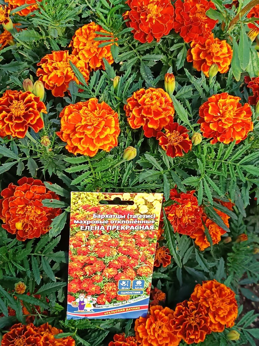 Бархатные соцветия изумительной красоты. Куст компактный, густо-облиственный, в период цветения весь покрывается яркими, двуцветными, оранжево-красными, с золотистыми краями цветками, собранными в махровые соцветия. Используют для клумб, рабаток, бордюров и украшения...