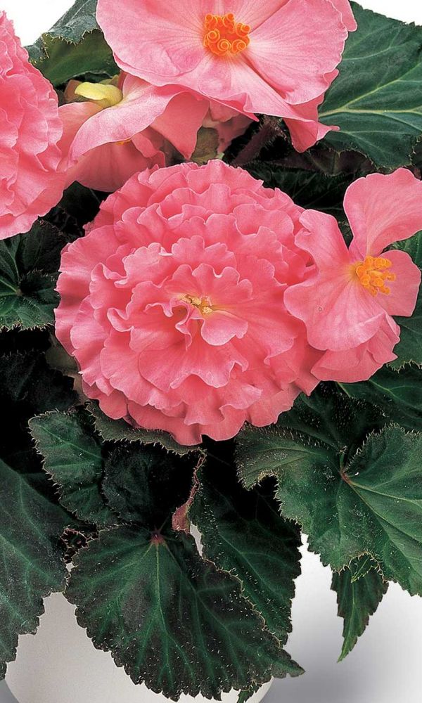 Ампельная бегония. Растение формирует 5-8 побегов длиной 35-40 см, усыпанных розовыми цветками. Цветки махровые и полумахровые, камелиевидной формы, 6-8 см в диаметре. Цветение обильное и продолжительное. Ампельная бегония великолепно смотрится в подвесных кашпо и...