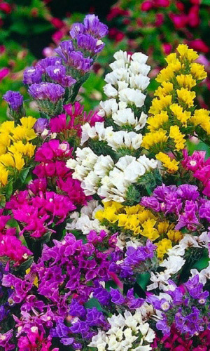 ОднолетнееОдно из самых популярных растений для зимних букетов. Листья собраны в большую плотную розетку. Мелкие цветки собраны в щитковидные соцветия, разнообразную окраску которым придают жесткие чашечки, окрашенные в жёлтые, белые, розовые, голубые, сиреневые цвета. Цветёт с июля по октябрь. Используют для миксбордеров, альпийских горок, для срезки и зимних букетов.