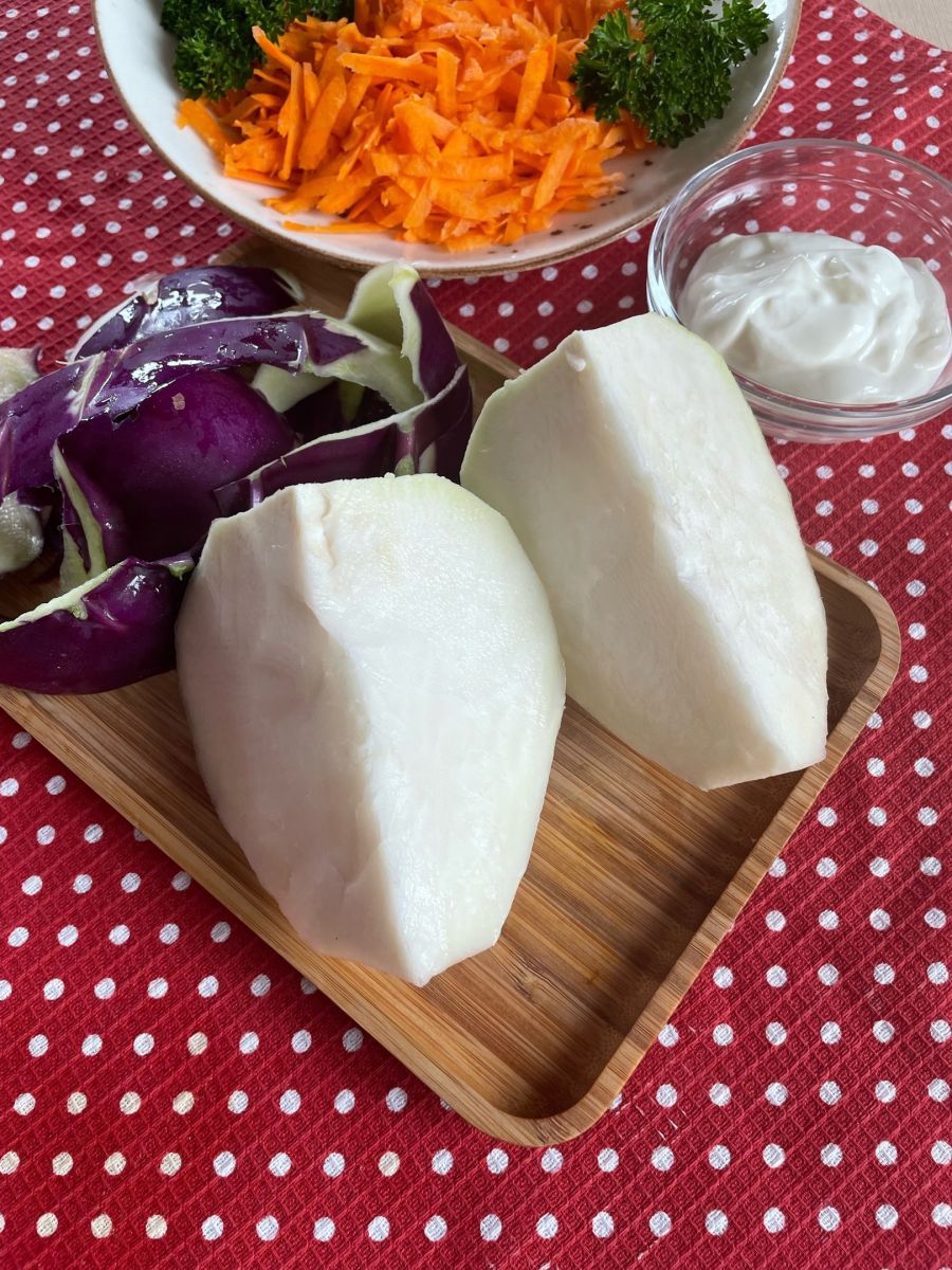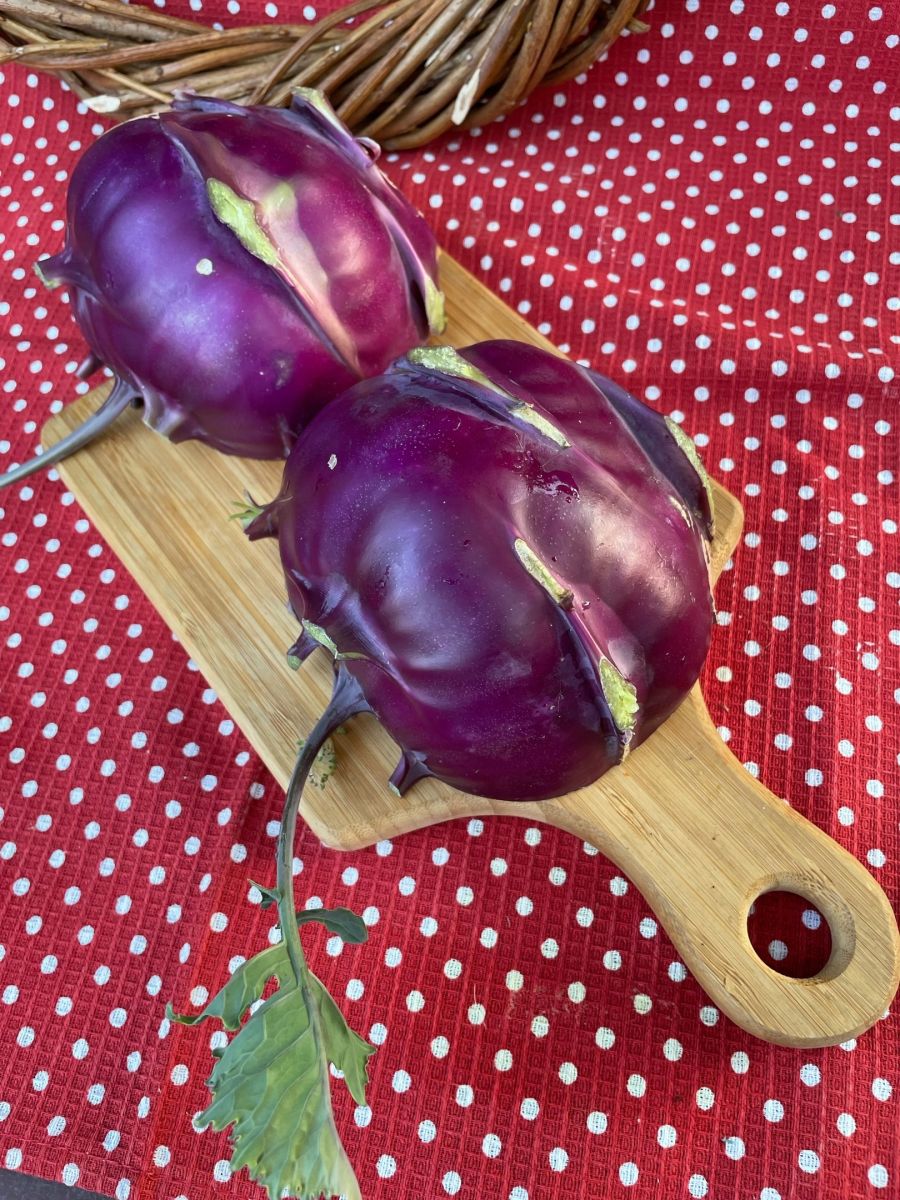 Высокоурожайный, среднеспелый (110-130 дней) сорт. Розетка листьев полувертикальная. Стеблеплод среднего размера, широкоэллиптический, кожура светло-фиолетовая. Мякоть белая, нежная, сочная, сладкая, хрустящая, без горечи. Масса 500-700 г (до 1,3 кг). Вкусовые качества отличные.