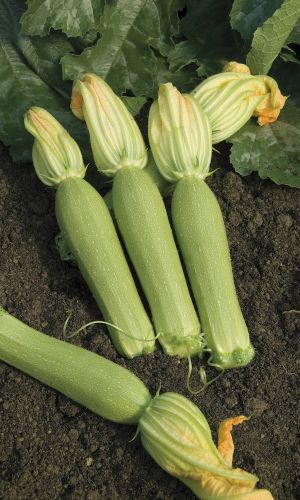 Великолепный кустовой гибрид кабачка цуккини. Скороспелый – начинает плодоношение через 38-45 дней после всходов. Плоды цилиндрической формы, гладкие, глянцевые, средней длины, массой 0,6-0,8 кг. Мякоть кабачка светлая и плотная, кожа тонкая. Вкус очень нежный. Гибрид рекомендуется использовать в кулинарии и для переработки: их жарят, тушат, солят и маринуют. Молодые плоды можно использовать в салате свежими. Урожайность высокая – 7-8 кг/м2...