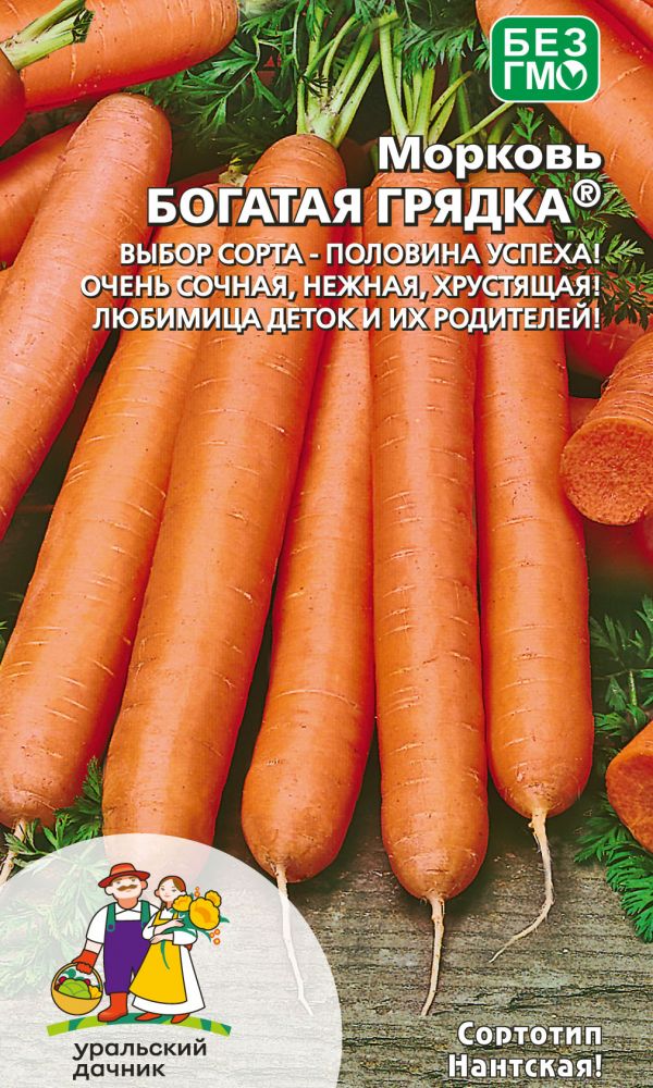 Очень популярный сорт голландской селекции нантского сортотипа для свежего рынка и краткосрочного хранения. Раннеспелый, от всходов до технической спелости 90-100 дней. Корнеплоды цилиндрические, однородные, длиной 15-18 см, с тупым кончиком, с интенсивной наружной и...
