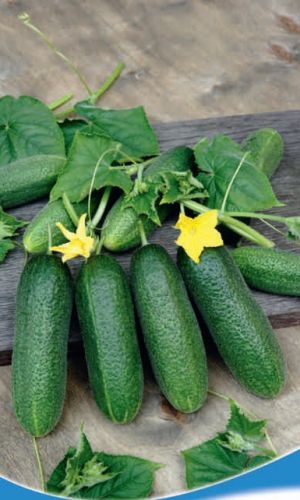 Раннеспелый, партенокарпический, пучковый гибрид женского типа цветения для открытого и закрытого грунта. Плоды цилиндрические, длиной 11-14 см, тёмно-зелёные, белошипые, крупнобугорчатые.Ценность: устойчивость к основным заболеваниям и хорошая адаптируемость к любым условиям выращивания, высокие вкусовые и товарные качества. Рекомендуется для употребления в свежем и консервированном виде...