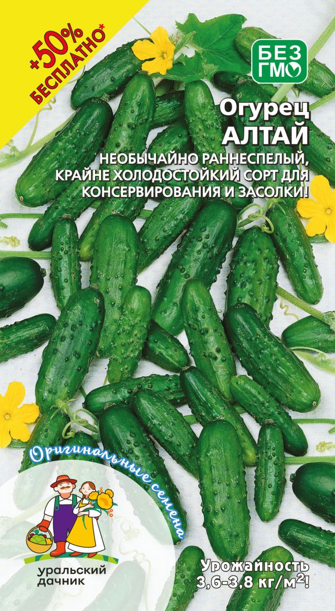 Раннеспелый сорт для открытого грунта. Растение среднеплетистое. Плоды овальной формы, крупнобугорчатые, зелёные, длиной 9-13 см, массой 90-118 г, опушение белое. Вкус свежей и солёной продукции хороший. Урожайность 3,6-3,8 кг/м2.