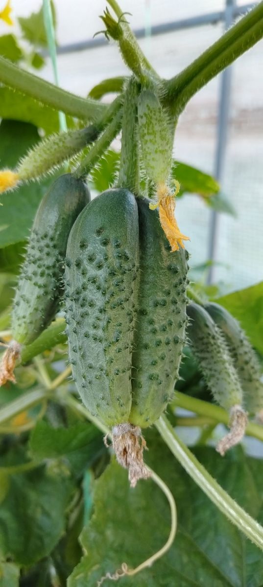 Гибрид ранний, средневетвистый, партенокарпический, преимущественно женского типа цветения для открытого и защищённого грунта, а также для плёночных теплиц. От всходов до начала плодоношения 40-43 дня. При благоприятных условиях в узле формирует пучковую завязь. Плоды цилиндрической формы, тёмно-зелёные, крупнобугорчатые, белошипые, массой 80-100 г, генетически без горечи. Отличные вкусовые качества как в свежем, так и в консервированном виде. Устойчив к кладоспориозу, вирусу обыкновенной огуречной мозаики, мучнистой росе и оливковой пятнистости. Урожайность в открытом грунте – 12-14 кг/м2, в защищённом грунте свыше 20 кг/м2. Предназначен для свежих салатов, а также засолки, маринования и консервирования.