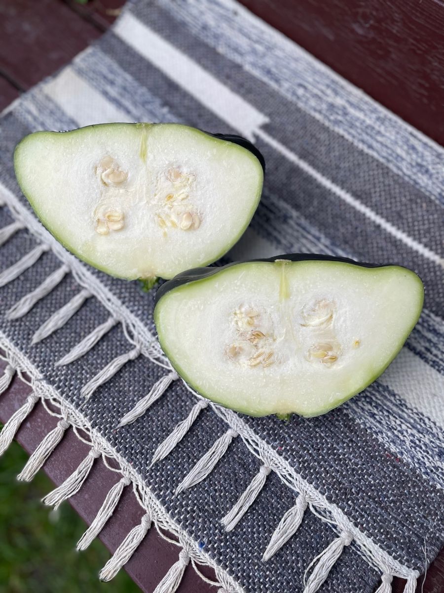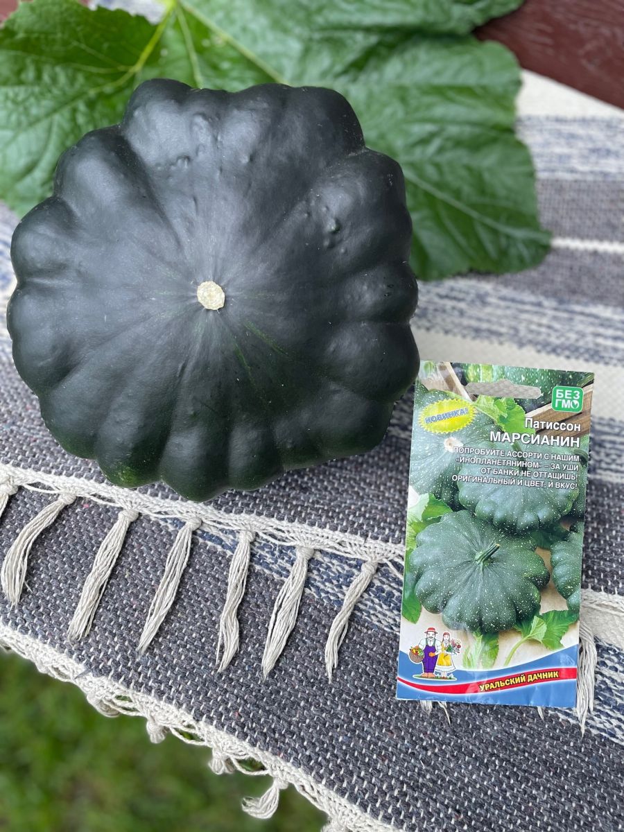 Высокоурожайный, раннеспелый, кустовой сорт с необычной окраской плодов. Плоды дисковидной формы, с зубчатыми краями, массой 300-600 г, тёмно-зелёные, почти чёрные, с повышенным содержанием аскорбиновой кислоты (витамина С). Мякоть белая, плотная, оригинального вкуса.