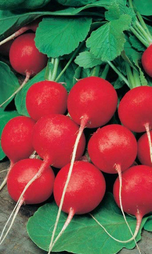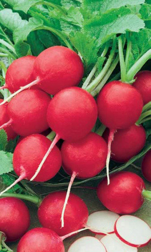 Самый ранний из известных сортов редиса (срок созревания 16 дней). Корнеплоды ярко-красные, округлой формы, очень сочные, деликатесного вкуса, имеют великолепный товарный вид. Используют для ранней выгонки в открытом и защищённом грунте. Ценность: высокая товарность, выровненность корнеплодов, отличные вкусовые качества, устойчивость к растрескиванию и стрелкованию...