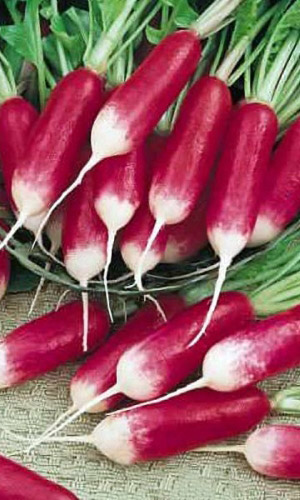 Раннеспелые сорта редиса (срок созревания корнеплодов 16-22 дней) для ранней выгонки в открытом и защищённом грунте. Корнеплоды имеют разную форму, выравненные, различных окрасок: красные, розовые, белые и других цветов. Мякоть белая, нежная, очень сочная. Эфирные масла придают деликатесный слабоострый вкус. Сорта высокоурожайные, устойчивы к растрескиванию корнеплодов и стрелкованию...