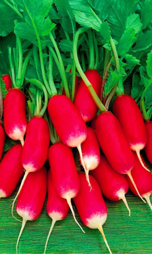 Стабильно урожайный, раннеспелый сорт для выращивания в открытом и защищённом грунте. Корнеплоды цилиндрические, красные, с белым кончиком, длиной 6-8 см. Мякоть белая, плотная, сочная, слабоострого вкуса.Ценность: ранняя и стабильная урожайность, высокая товарность, выровненность корнеплодов, устойчивость к недостаточной освещённости...