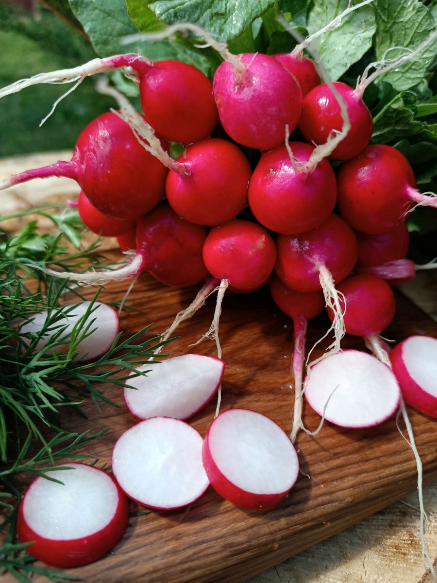 Новый, один из самых скороспелых гибридов немецкой селекции. От всходов до уборки 16-18 дней. Корнеплоды тёмно-красные, округлые, массой 15-20 г. Мякоть белая, матовая, сочная, сладкая, плотная, без пустот, не одревесневает.