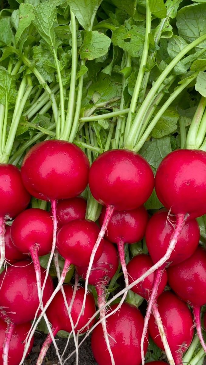 Гранатовый шар – новый сорт челябинской селекции, который настолько стремительно формирует округлые, ярко-красные корнеплоды (средней массы 20 г), что по этому показателю мог бы ставить рекорды. Всего каких-то 16 дней после прорастания семян, и хрустящая, сочная, с белой мякотью редиска – на столе. Созревание быстрое и дружное даже при недостаточной освещённости! Редис хорошо хранится, находясь в прохладном месте долго не дрябнет. Если вы хотите продолжительное время быть с урожаем, посев корнеплода можно производить многократно, через небольшие промежутки. Растение не формирует цветоносные побеги, поэтому подходит для возделывания на открытых грядках и в теплицах весь весенне-летне-осенний сезон. Ещё одна ценность сорта – его неповторимый, пикантно-сладостный вкус. Вам и вашим одаряемым точно понравится! Алый редисочный букет – лучший весенний подарок!
