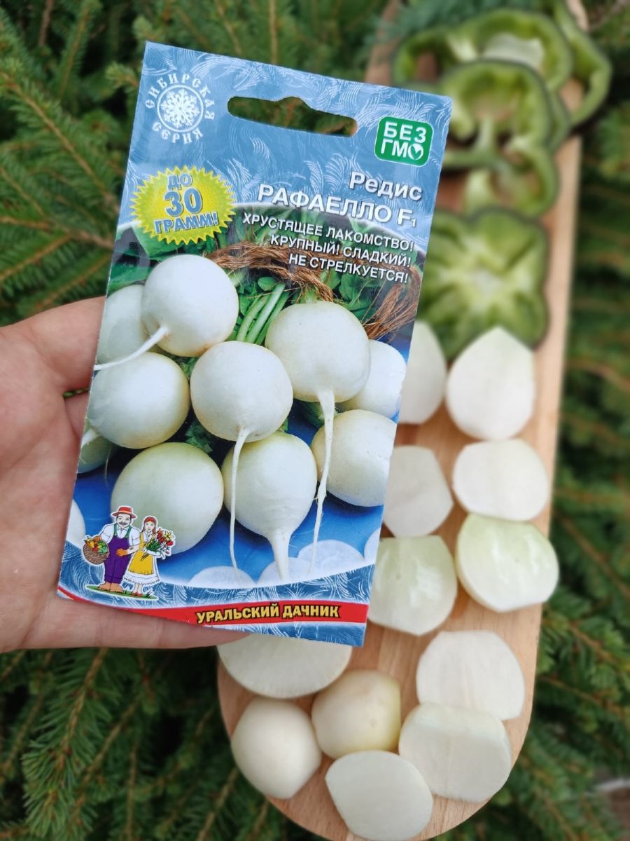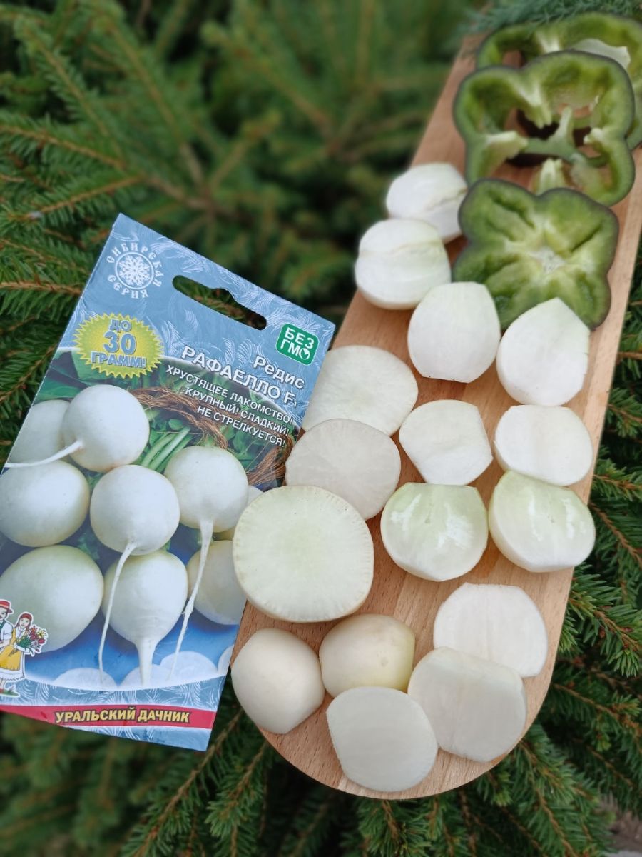 Скороспелый высокопродуктивный гибрид для открытого и защищённого грунта. Корнеплоды округлые, белоснежные, массой до 30 г, плотные, сочные, нежные, сладкие.