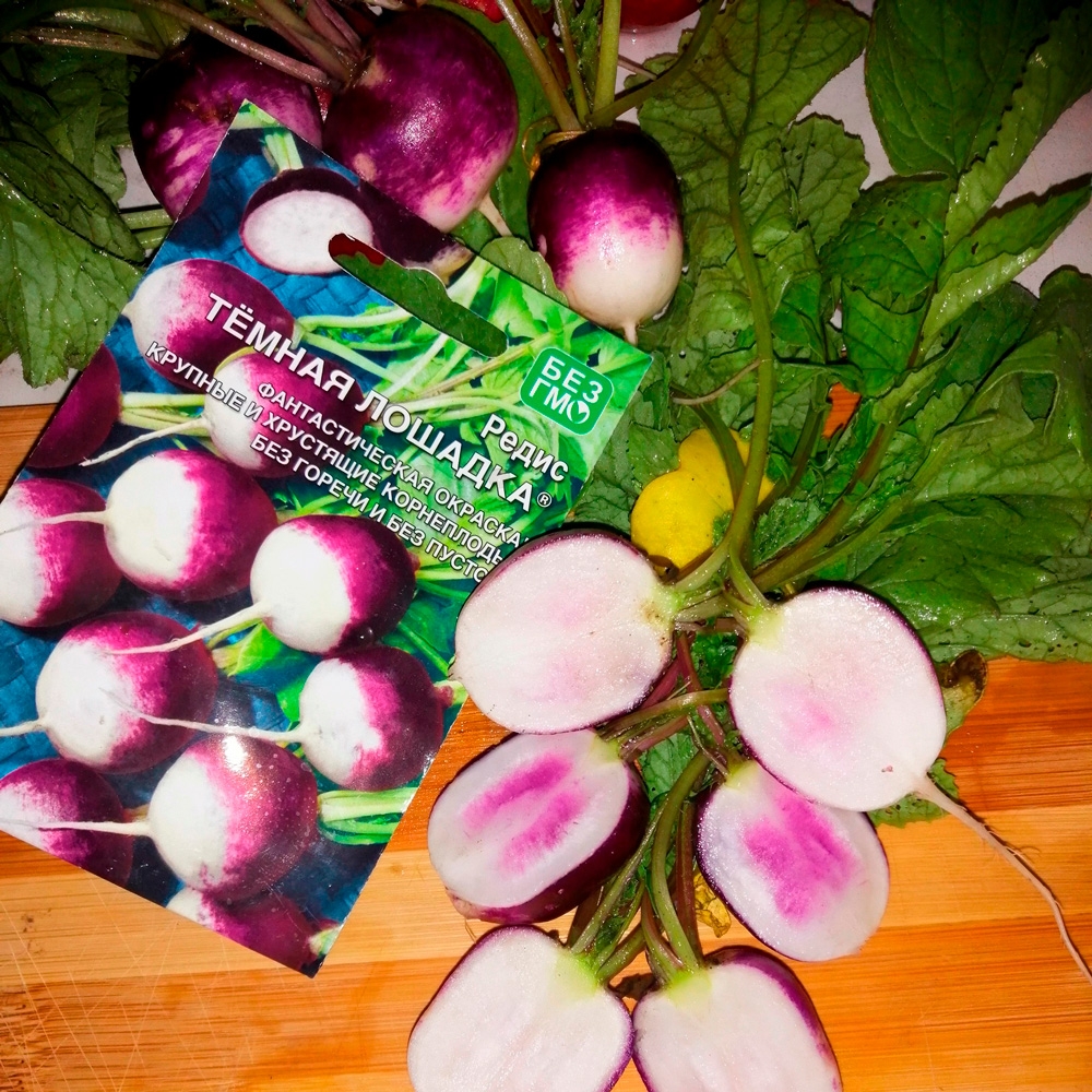 Ранний сорт, от всходов до уборки урожая 22-24 дня. Корнеплоды оригинальной необычной окраски – ярко-фиолетовые с белым кончиком, очень крупные. Мякоть белая, нежная, сочная, слабо острая. Устойчив к цветушности, для весеннего и осеннего посева.