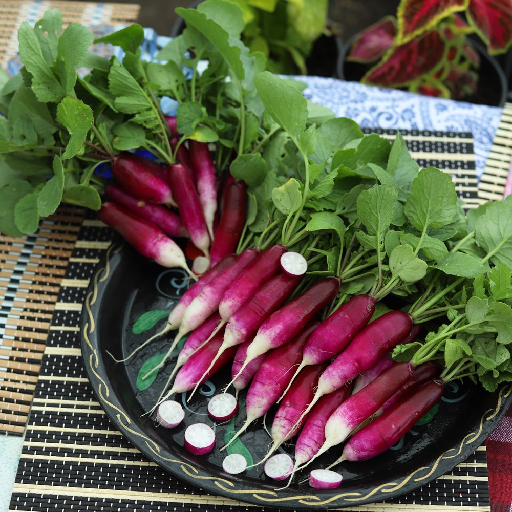 Среднеранний сорт, период от всходов до сбора корнеплодов 25-28 дней. Рекомендуется для выращивания в открытом грунте, весенних теплицах, плёночных укрытиях. Корнеплоды удлинённо-цилиндрической формы, необычной, сине-фиолетовой окраски, с белым кончиком. Мякоть белая, нежная, очень сочная, вкус слабоострый, приятный.
