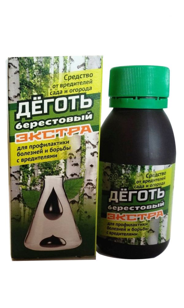 Дёготь берестовый – природное средство от вредителей сада и огорода. Отпугивает и уничтожает: тлю, клещей, бабочек, жуков и даже грызунов. Обеспечивает дезинфицирующий, обеззараживающий, антисептический, противомикробный, антипаразитарный и противогрибковый...