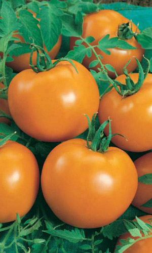 Высокоурожайный среднеспелый сорт. Предназначен для открытого грунта и плёночных теплиц. Урожайность 15-20 кг/м2. Растения индетерминантные, высотой до 120 см, с короткими междоузлиями. Плоды округлые, гладкие, массой 280-300 г, без зелёного пятна у плодоножки, с высоким содержанием каротина, сахаров и витамина С. Вкус отличный, томаты очень сладкие и сочные. Рекомендуются для употребления в свежем виде. Сорт жаростойкий, устойчив к основным заболеваниям культуры. ...