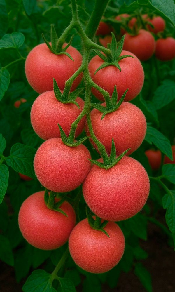 Этот раннеспелый индетерминантный сорт подходит для выращивания как в открытом грунте, так и под плёночными укрытиями. Спустя три месяца после появления всходов он формирует необычные, опушённые плоды массой 105-115 г. Эти многокамерные, плотные плоды можно использовать как в салатах, так и для консервирования. В каждой кисти завязывается от 8 до 10 плодов, а при регулировании их количества масса каждого может превысить 200 г.