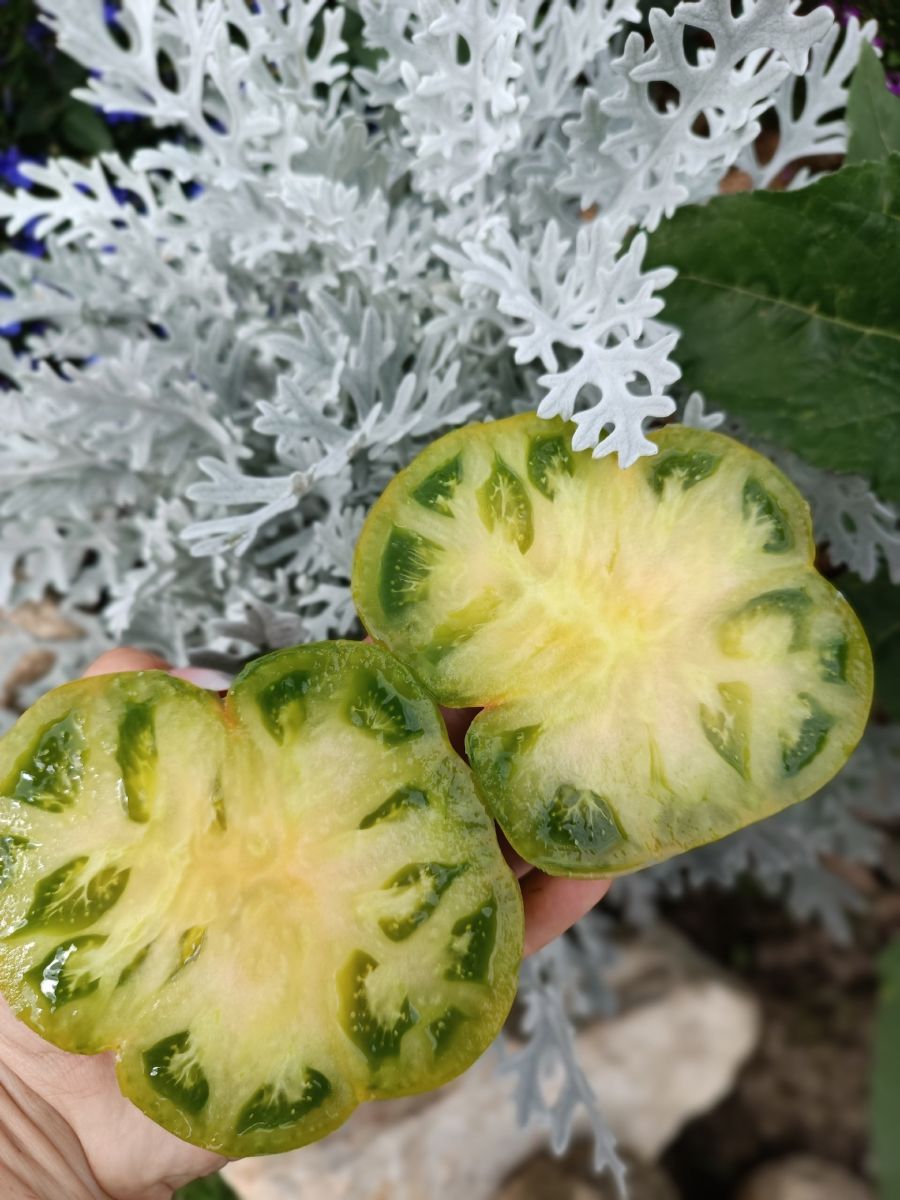 Закрытый грунтОригинальный гибрид томата, отличающийся от собратьев необычайно сладким вкусом! Среднеранний (110-112 дней от всходов до урожая) для выращивания в теплицах. Растение мощное, крепкое, высотой 120-150 см. Первое соцветие – над 8-9-м листом, в кисти 3-5 плодов. Плоды крупные, отдельные до 400 г, выровненные, округло-плоские, многокамерные, мясистые, сочные, сахарные. Окраска плодов неярко-зелёная, переходящая по мере созревания в жёлто-зелёную с еле заметными полосками.