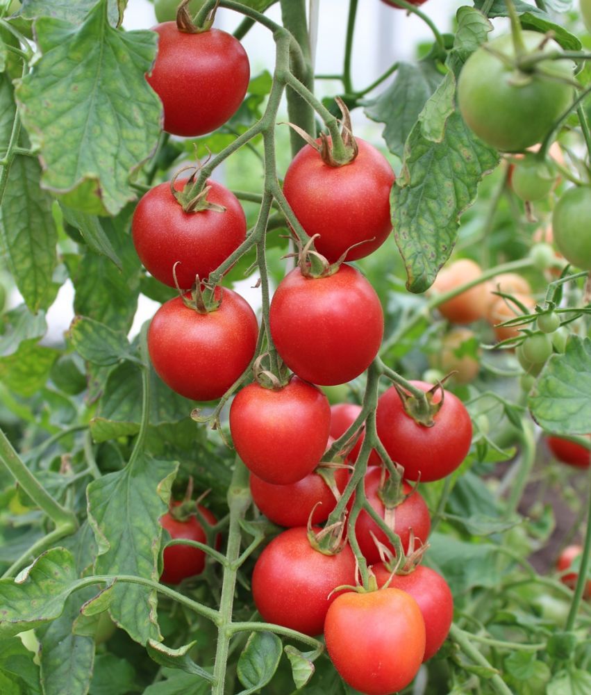 Очень ранний сорт для защищённого грунта, период всходы – биологическая спелость составляет 95 суток. Растение высокорослое, формируют в два стебля. Плоды овально-кубовидные, насыщенно-красного цвета массой 15-20 г. Уборка проводится целыми кистями или отдельными плодами. Устойчив к растрескиванию, жаростойкий. Устойчив к вертициллезному увяданию, фузариозному увяданию и галловым нематодам.
