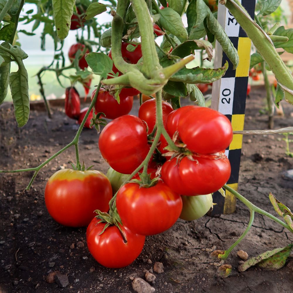 Сахаристая мякоть, отменный вкус, рекордная урожайность! Низкорослый куст с тяжёлыми, мощными плодами, массой до 500 г, поражает воображение. Великолепный крупноплодный сорт для открытого грунта, без пасынкования! Плоды плоско-округлые, красные, гладкие, мясистые, очень вкусные и сочные.