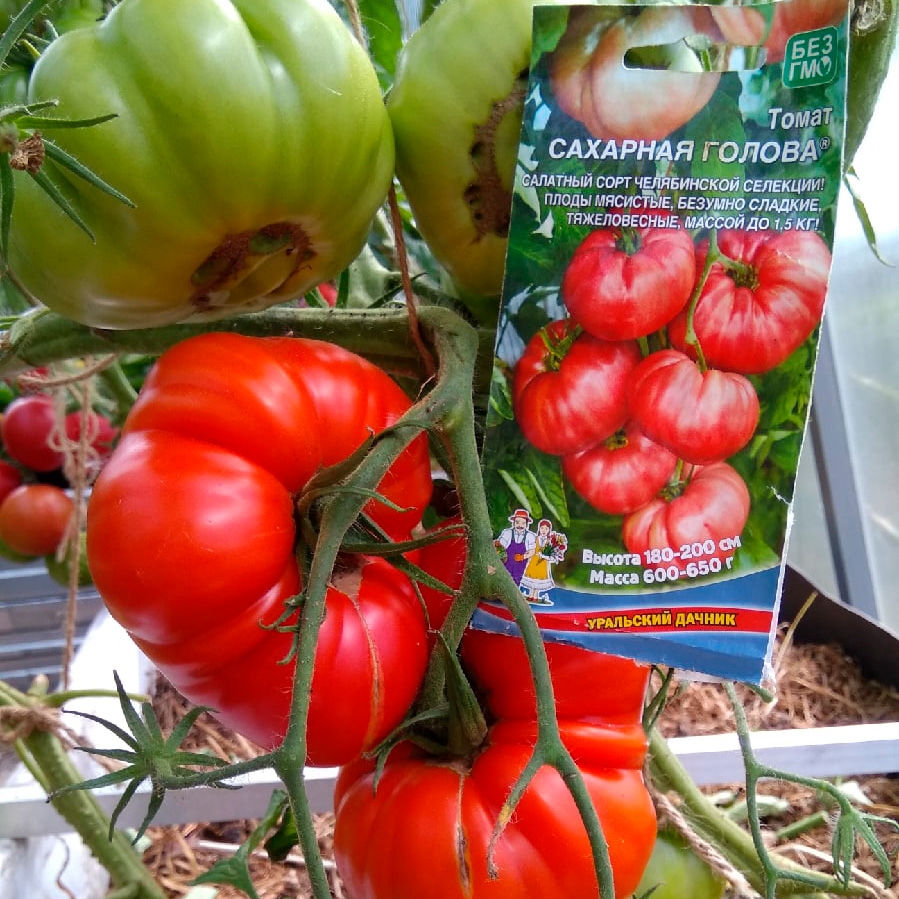 Новый салатный среднеспелый (110 дней) сорт Челябинской селекции, создан для выращивания во всех типах теплиц и парниках. Растение мощное, высотой 1,8-2,0 м, хорошо облиственное, индетерминантное. Сорт требует обязательной подвязки как самого ствола, ветвей так и кистей, кисти сильно нагружены плодами, очень тяжёлые. Плоды крупные, массой до 1,5 кг, ребристые, красного цвета. Мякоть сочная, с маленькими семенными камерами, отличных вкусовых качеств. Использование универсальное – в свежем виде, для заморозки.
