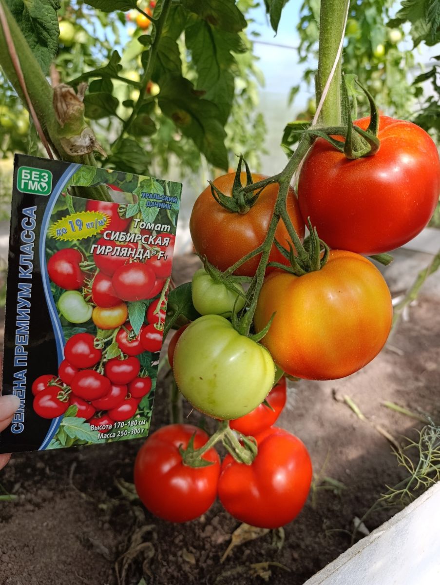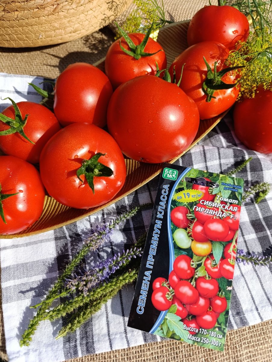 Экстремально ранний гибрид, период от всходов до начала созревания 90-95 дней. Растение мощное, высотой 170-180 см, формировать следует не менее чем в 2 ствола. Первая кисть закладывается над 6-м листом, последующие через 2-3 листа. Кисть с 6-8 плодами, на растении формируется 10-11 кистей – всё это великолепие выглядит просто завораживающе, кисти как настоящие гирлянды с яркими плодами. Плоды интенсивно красной окраски, округлые, гладкие, плотные, массой 250-300 г, сочетающие наивысшие вкусовые качества с транспортабельностью. Урожайность стандартных плодов умопомрачительная 17-19 кг/м².