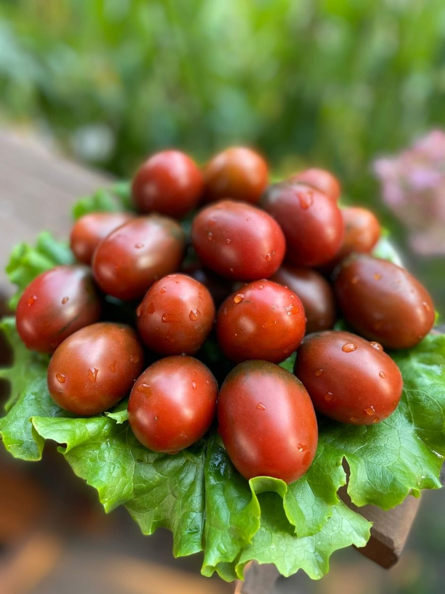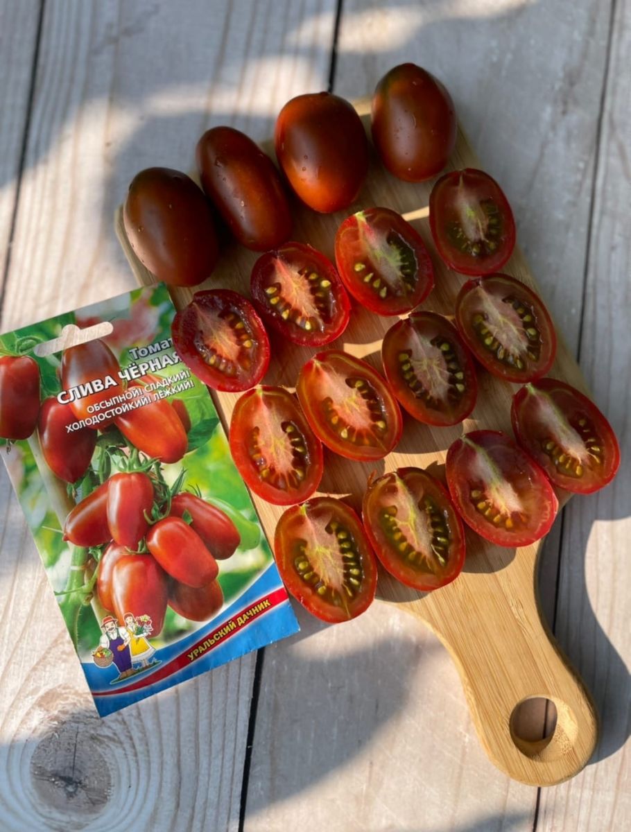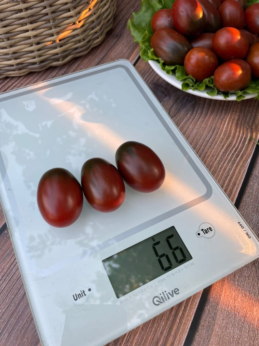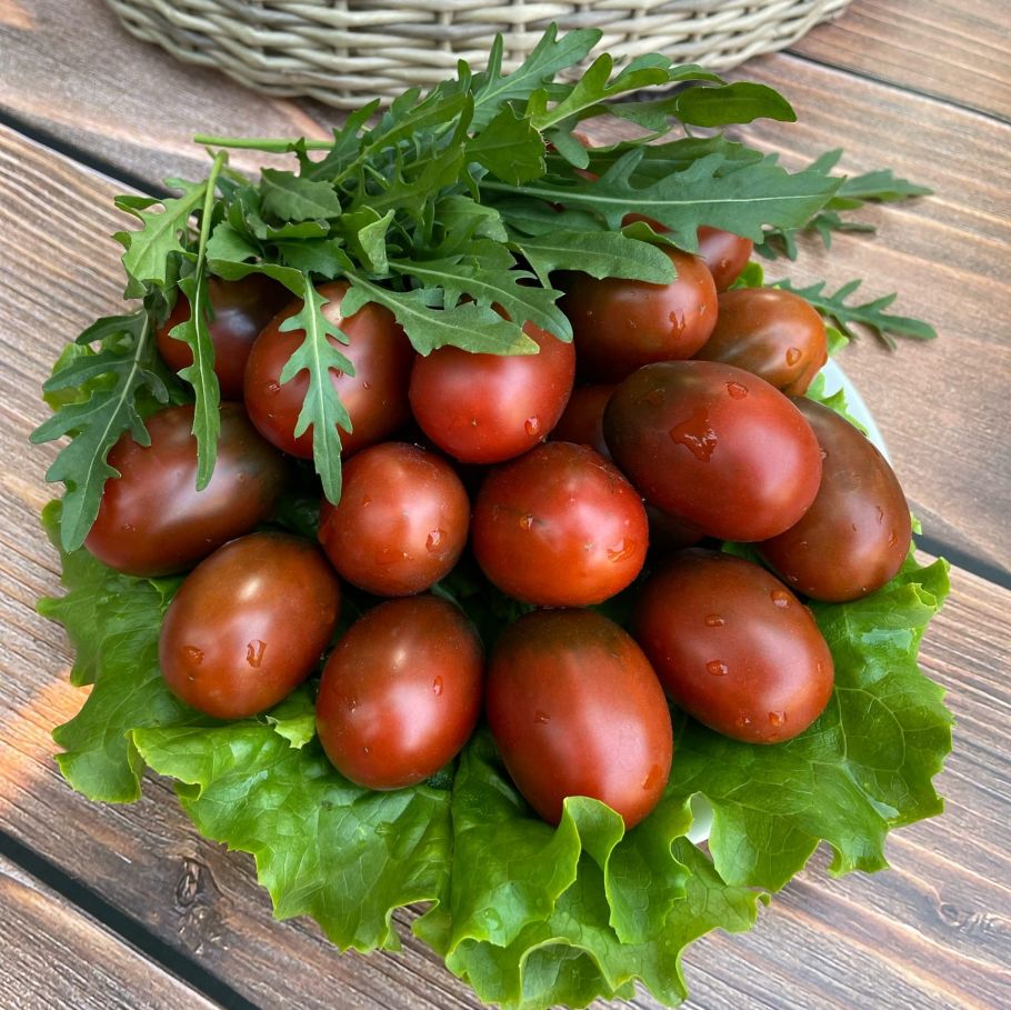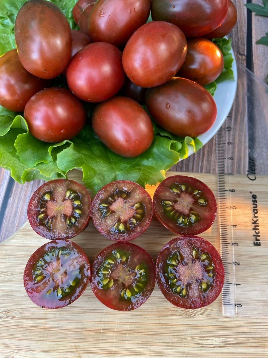Очень урожайный индетерминантный сорт для закрытого грунта. Плоды оригинальной яйцевидной формы, цвета тёмной вишни, массой 50-70 г, очень сладкие.