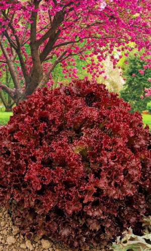 Высокоурожайный раннеспелый листовой сорт. Листья декоративные, гофрированные, красно-малиновые, нежные, хрустящие, формируют розетку диаметром 20-25 см. Ценность: отличные вкусовые качества, отсутствие горечи, устойчивость к цветушности. Рекомендуется для украшения блюд, употребления в свежем виде, декоративного оформления клумб и дорожек...