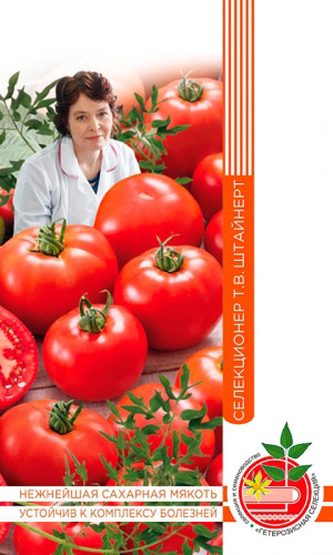 Урожайный, индетерминантный сорт для теплиц и парников. Среднеранний, начинает созревать уже на 108-11О день от всходов. Первое соцветие закладывается низко, над 7-м листом, последующие – через 1-2 листа. В период плодоношения кусты буквально увешаны плодами! Яркими, мясистыми плодами массой до 90 г. Мякоть сочная, нежная, очень сладкая, ароматная, богата витамином С, каротином и имеет повышенное содержание ликопина – мощного природного антиоксиданта. Товарная урожайность – 9-10 кг/м2...